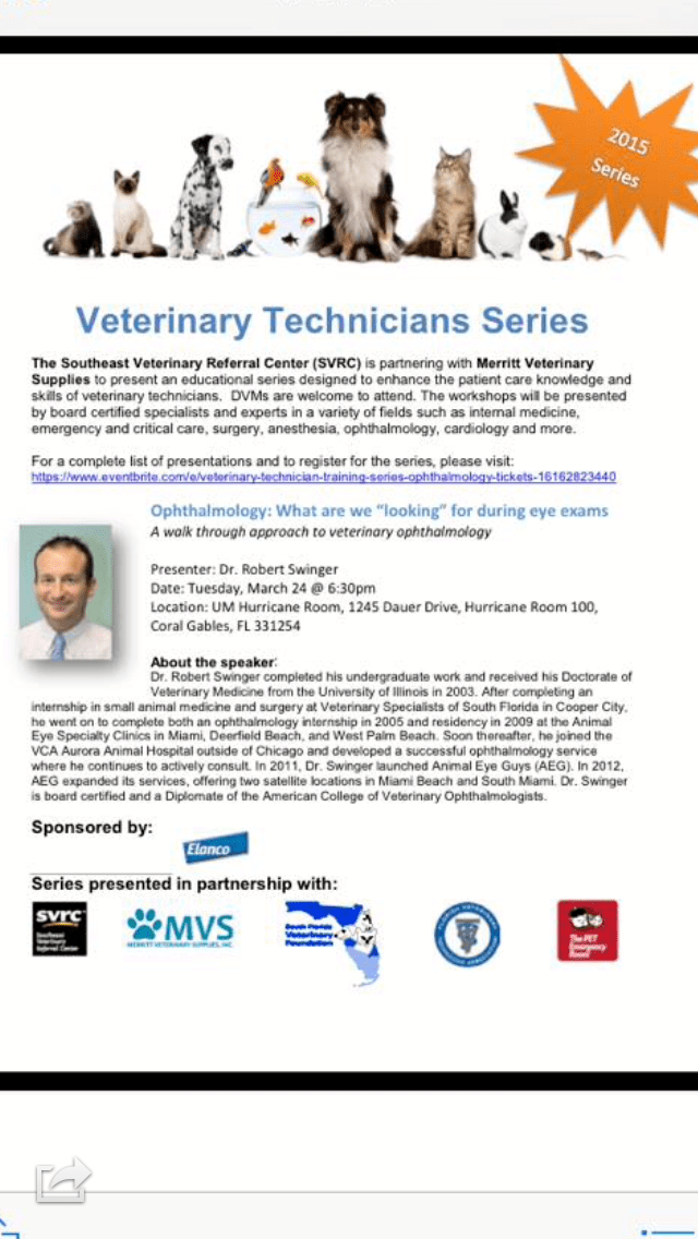 Miami Natural Pet Care is attending to Dr. Swinger’s lecture tonight about ophtalmology at the University of Miami Posted bymiaminaturalpet March 24, 2015 Leave a comment on Miami Natural Pet Care is attending to Dr. Swinger’s lecture tonight about ophtalmology at the University of Miami Share this: Click to email a link to a friend (Opens in new window) Email Click to share on X (Opens in new window) X Click to share on Facebook (Opens in new window) Facebook Click to share on Pinterest (Opens in new window) Pinterest Like Loading...