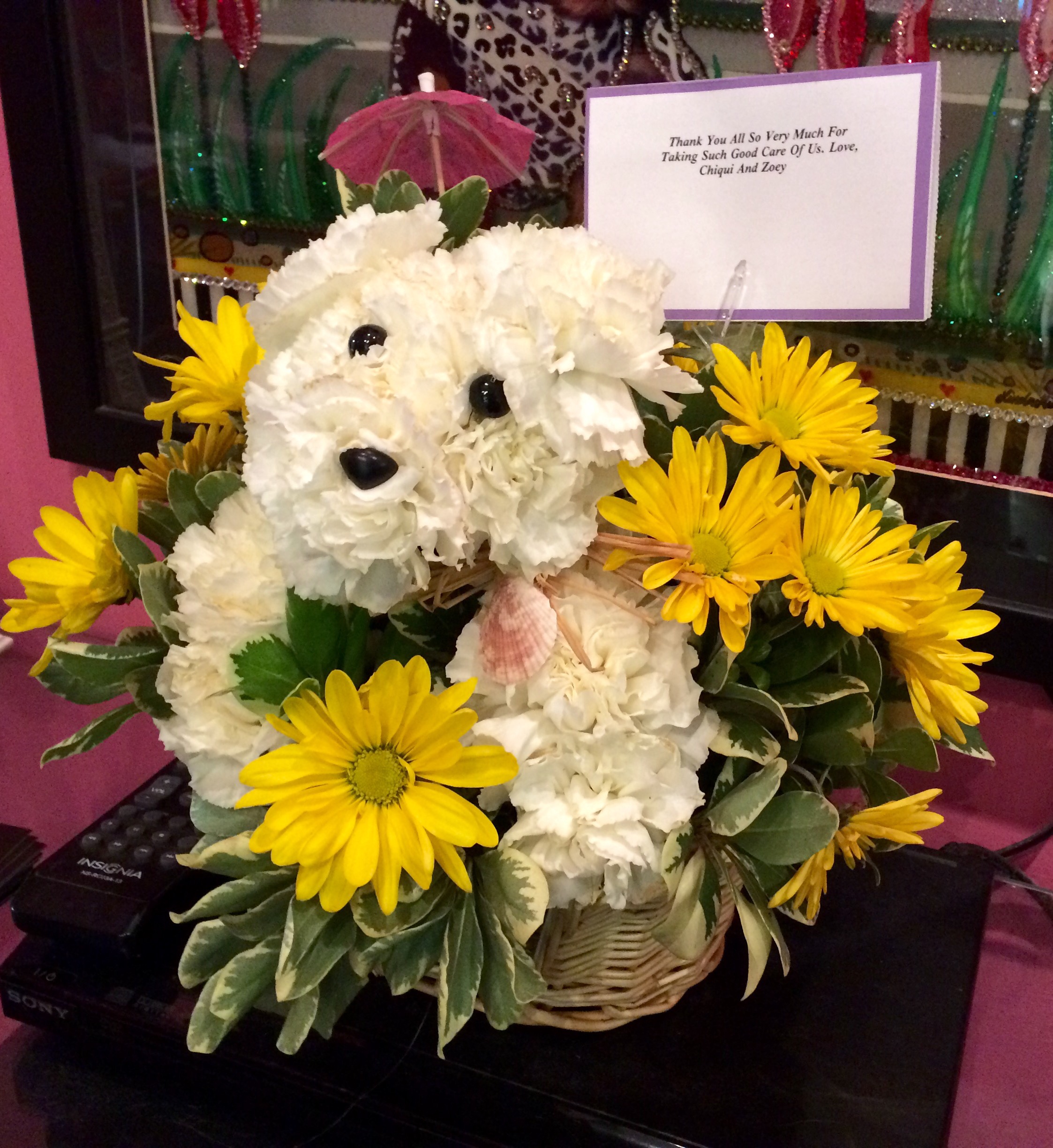 Owners were so happy with their 2 yorkshires’new fresh smiles that they offered Simply Sweetheart a beautiful flowers composition in the shape of a little dog. Thank you so much, it was a really sweet gift.