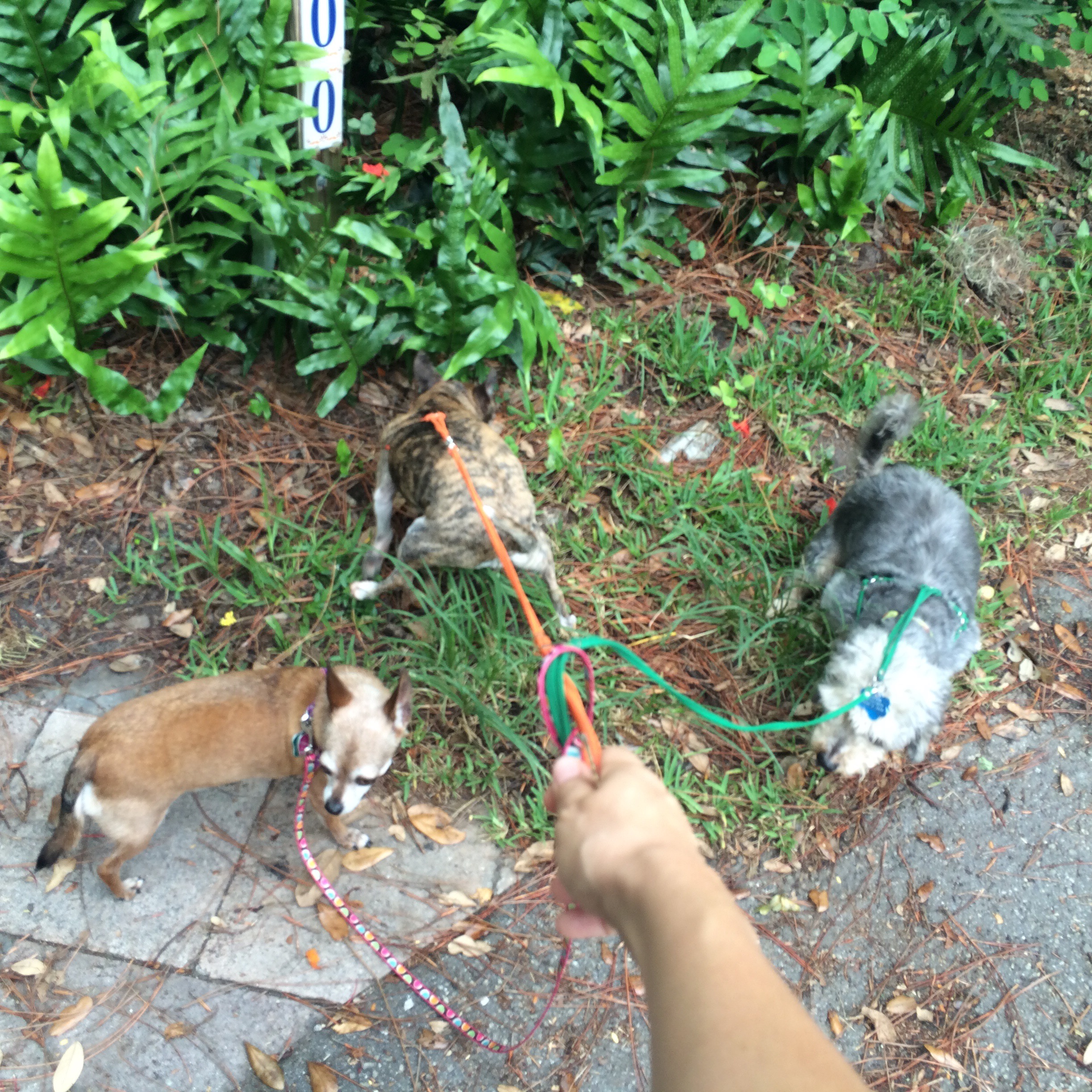 Miami Natural Pet Care went to her house 3 times a day to get them out. They are very sweet dogs and everything went great.