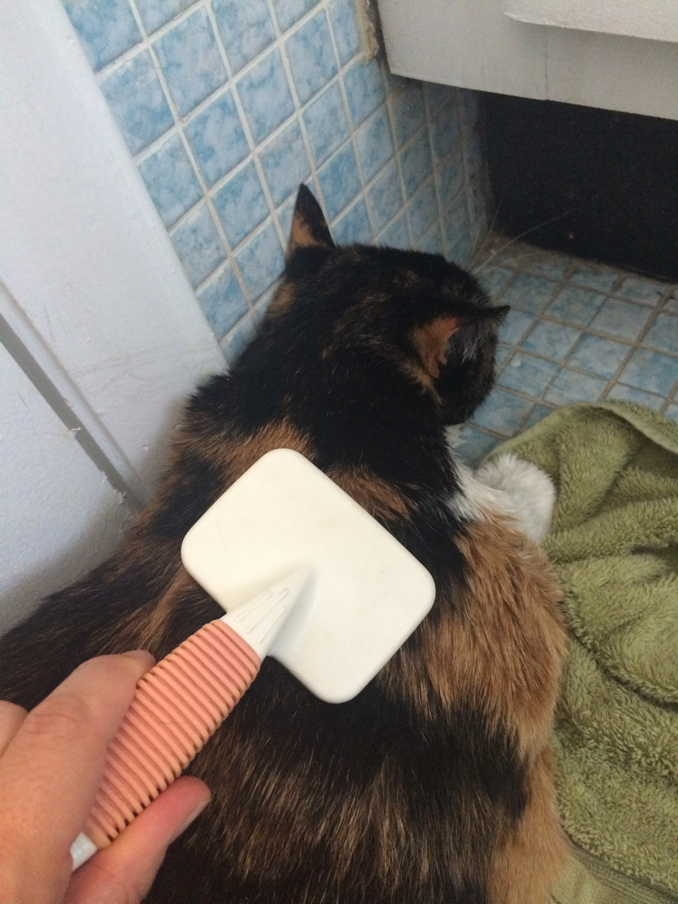 Miami Natural Pet Care went to visit Sweety in her Miami Beach appartment today. Every few months, her owner likes her to get a bath, her nails trimmed and her ears cleaned. Sweety was actually rescued years ago from the streets of Miami by Miami Natural Pet Care and we are very happy to see and check on her regularly. She’s not that fond of her bath and she’s a very sweet girl like her name tells us. She gets brushed for 30 minutes and so much hair is removed.