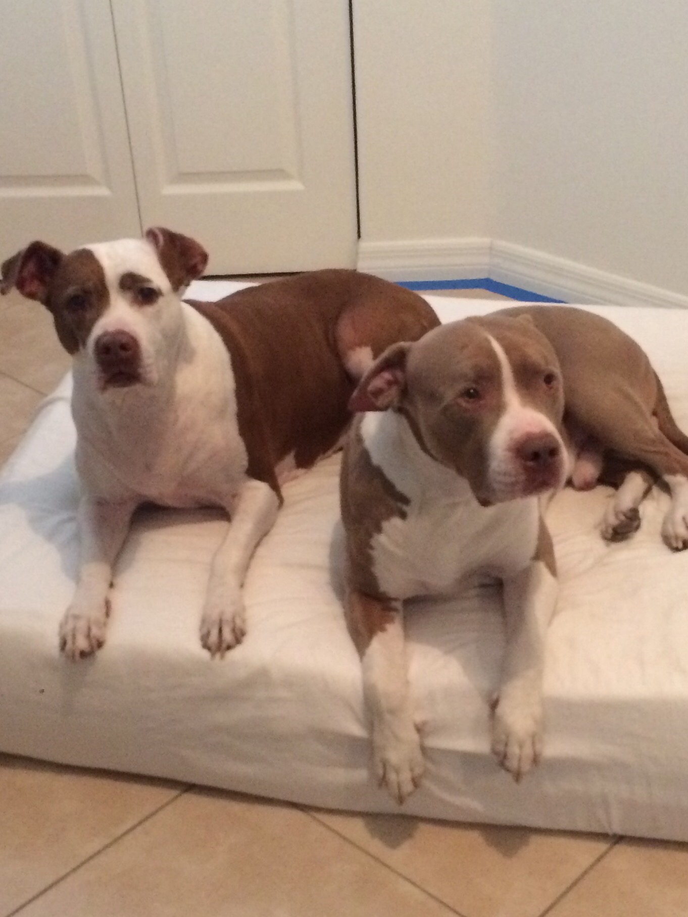 Lola and Asad, mother and son American Staffordshire Terriers, got their non anesthesic dental cleanings at home in Hollywood, Florida. They both were really good patients and a lot of tartar and plaque were removed, especially on Lola.