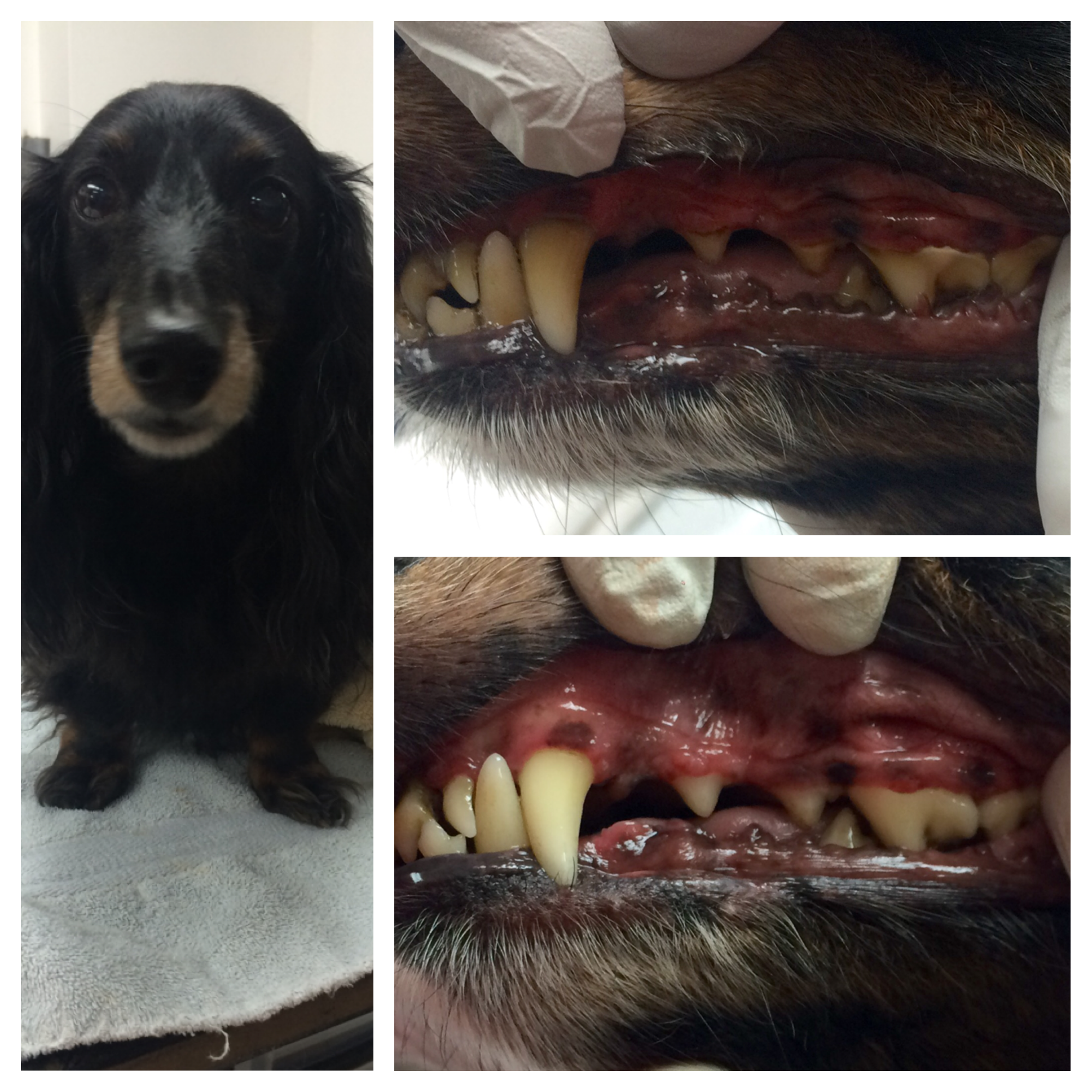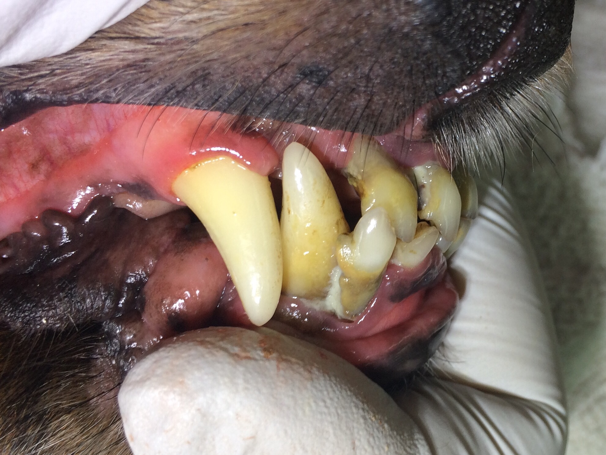 His owner was worried about putting him under anesthesia and he didn’t receive dental care for years, you can see on the first picture how much gingivitis and gum recession he developed. Most of his incisors are moving and the roots are exposed.