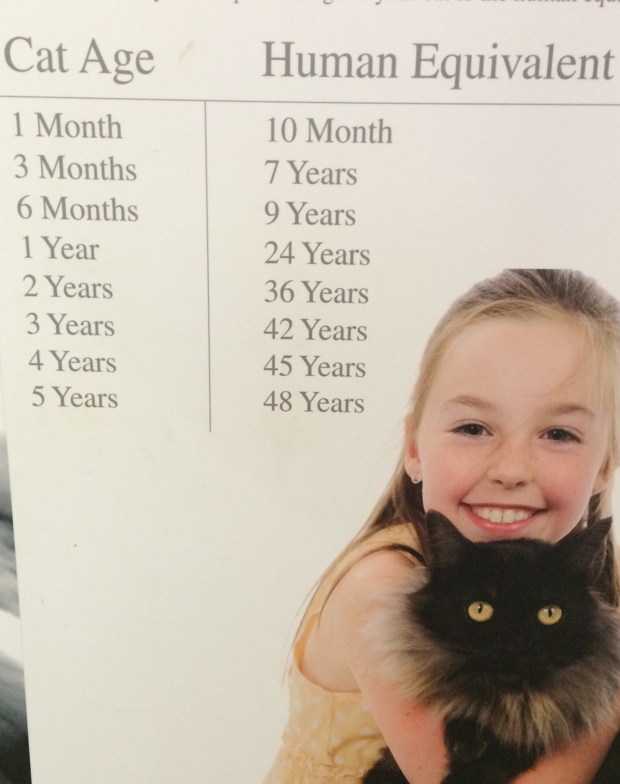 How old is my cat? Posted bymiaminaturalpet May 27, 2016 Leave a comment on How old is my cat? A chart to find out Share this: Click to email a link to a friend (Opens in new window) Email Click to share on X (Opens in new window) X Click to share on Facebook (Opens in new window) Facebook Click to share on Pinterest (Opens in new window) Pinterest Like Loading...