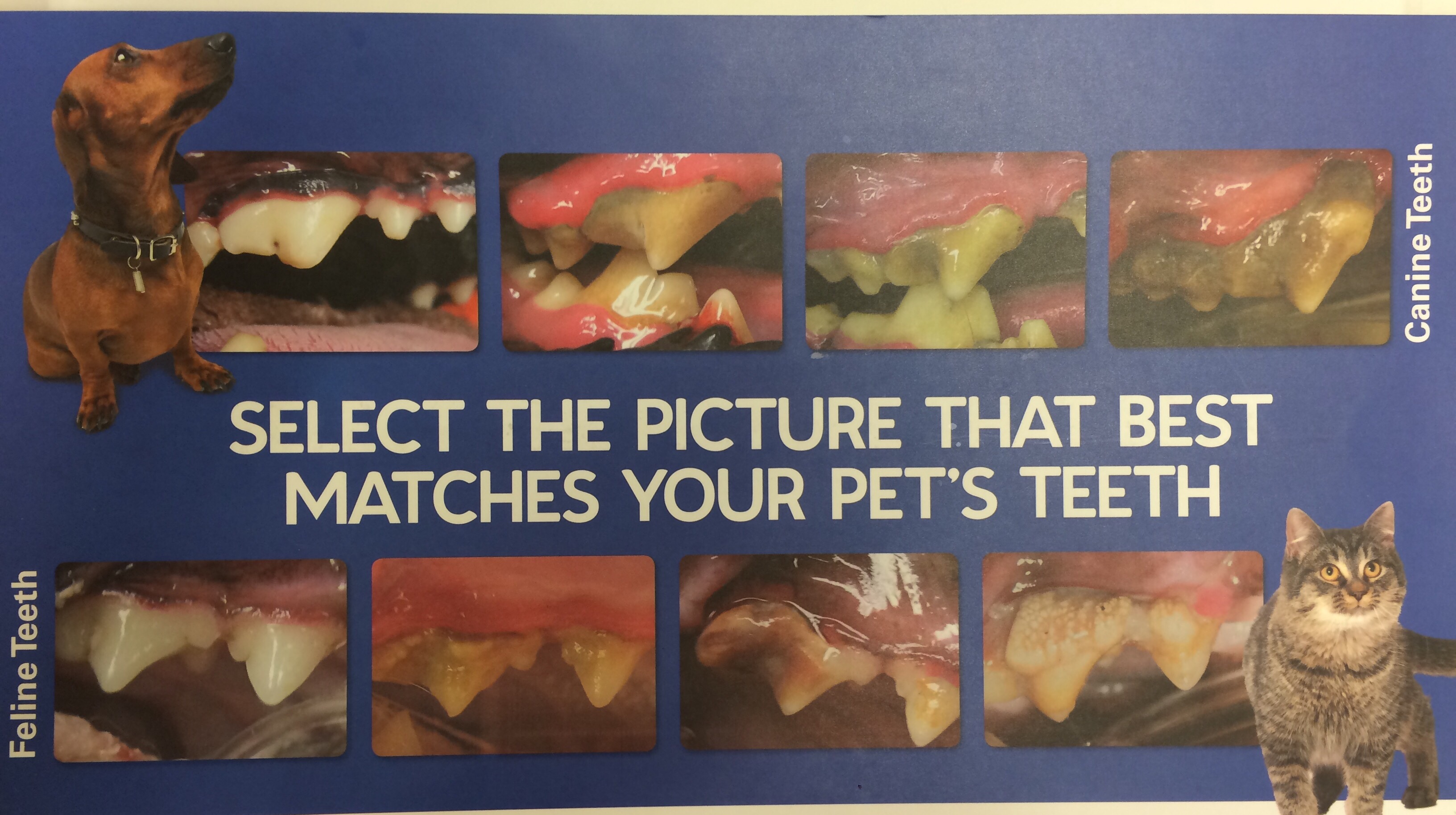 Open your dog or cat’s mouth today and look at his or her teeth. Do they look like the far left picture? If not please it’s time to make an appointment with us. Do not let the tartar accumulate or the gums will start to recess.
