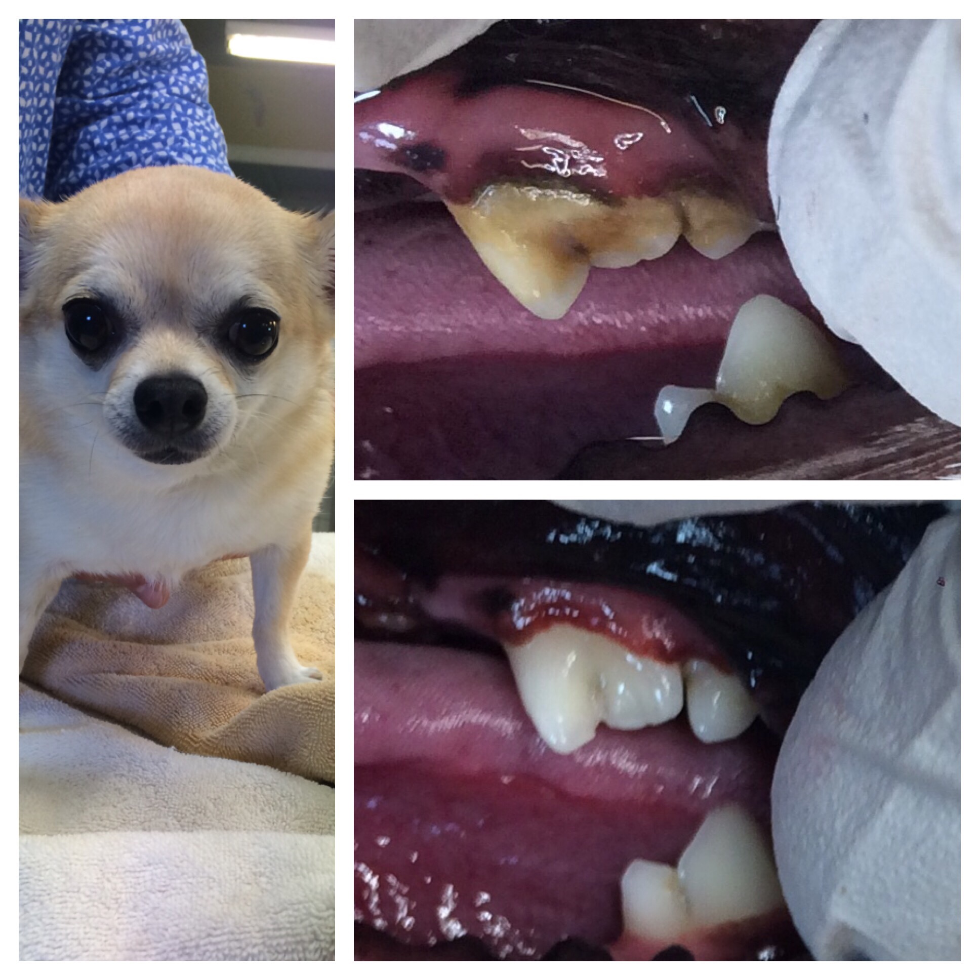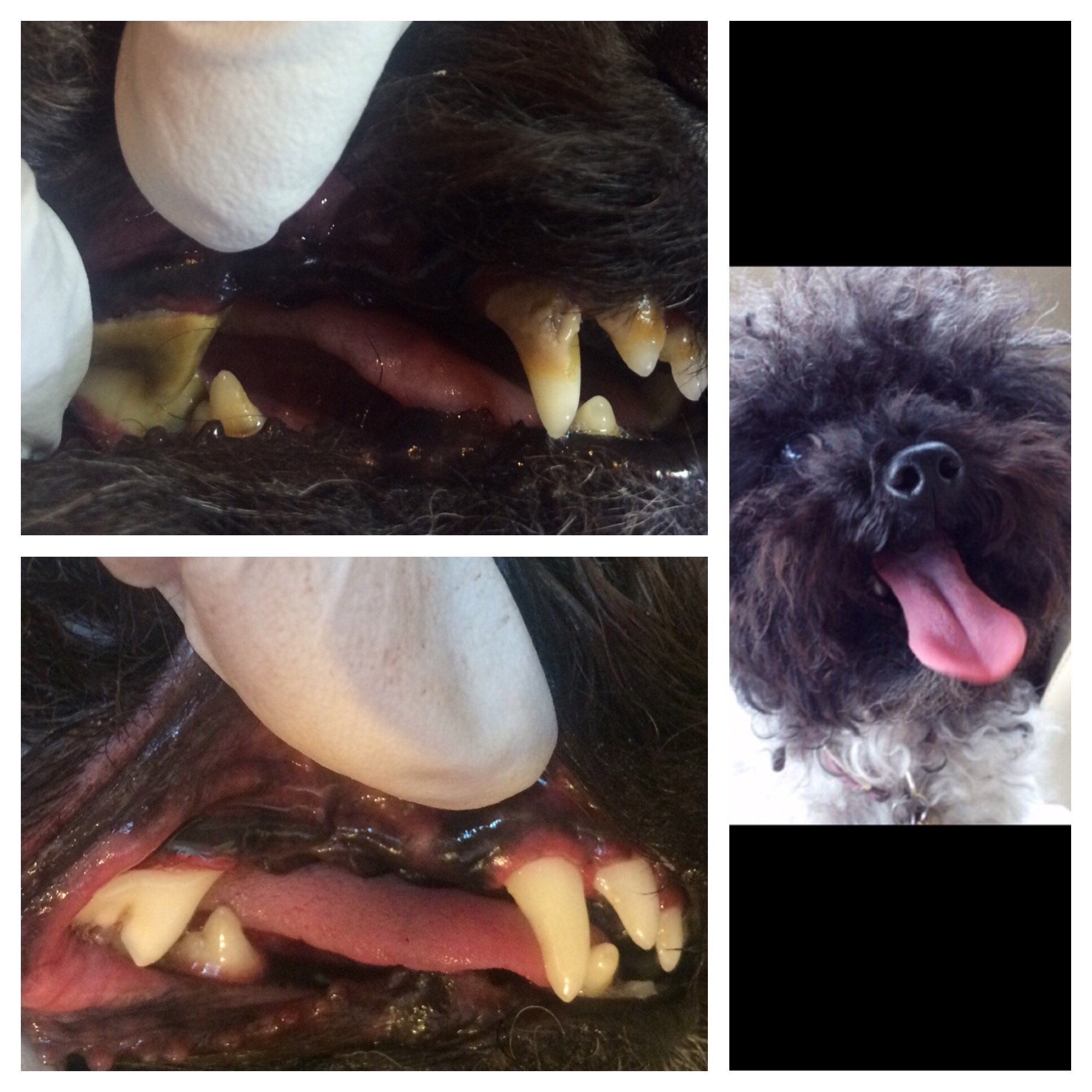 At 10 years old she was diagnosed by her vet with heart condition and it was not indicated to put her under anesthesia anymore. It would take the risk of her not waking up. For 5 years, her owner had no idea non anesthetic dog dental existed till one of our clients refered her to us. We saw a lot but Coconut’ mouth is beyond everthing we smelled and experienced before. We were able to clean a lot and help her as much as possible. It will have to be done in several times.