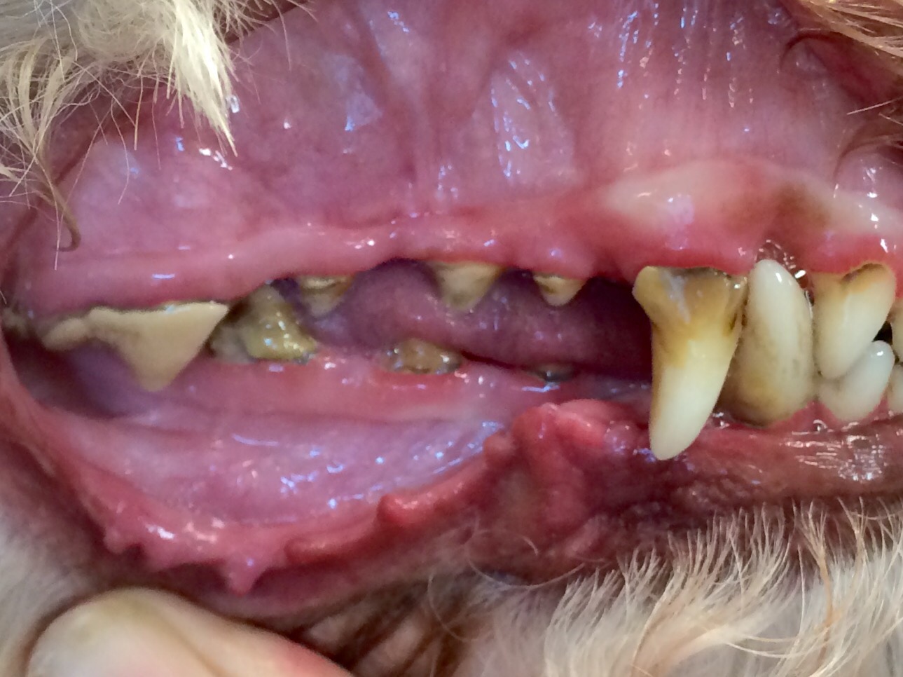 A serious danger is the bacterial infection and resultant inflammation in the gums, which can send bacteria through the dog’s bloodstream, where it can wreak havoc with the heart, lungs, kidney, and liver. Damage to these organs caused by infection can shorten the lives of our pets.